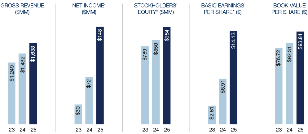 The firm reported record revenue of $1.6 billion and net income of $148.4 million in 2025. Basic earnings per share reached $14.13 for the year-ended December 31, 2025. These results translated into stockholders’ equity of $983.8 million and book value per share of $93.81 and tangible book value per share of $76.78, both at record levels.