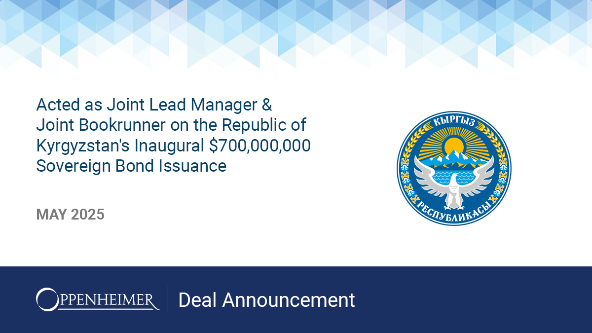 Oppenheimer is proud to have played a key role in this landmark deal and looks forward to supporting Kyrgyzstan’s continued development and capital markets access.