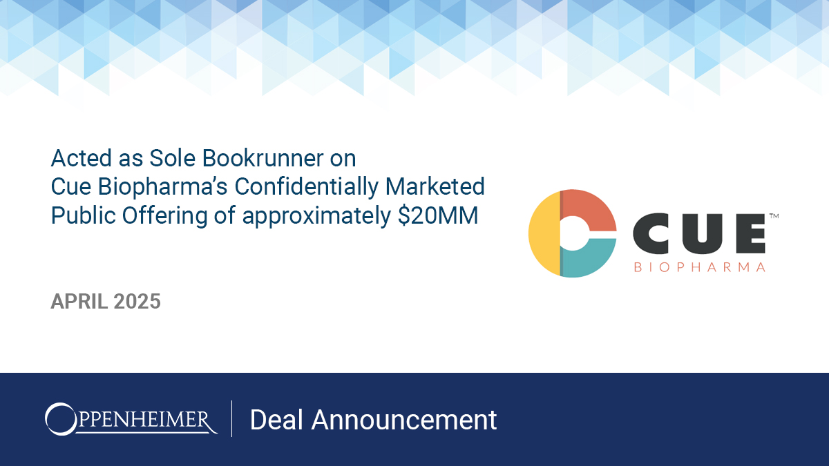 Oppenheimer & Co. Inc. acted as Sole Bookrunner on Cue Biopharma’s Confidentially Marketed Public Offering of approximately $20MM