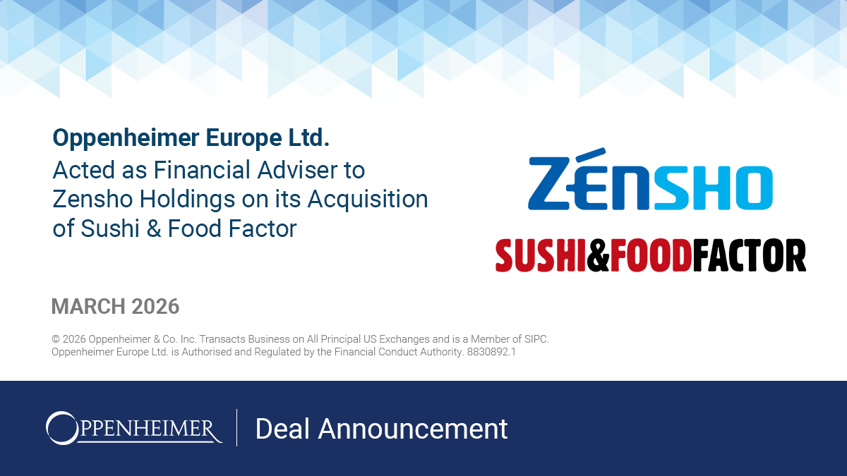 Oppenheimer’s European Consumer Investment Banking Team is pleased to have acted as Financial Adviser to Zensho Holdings on its acquisition of Sushi & Food Factor