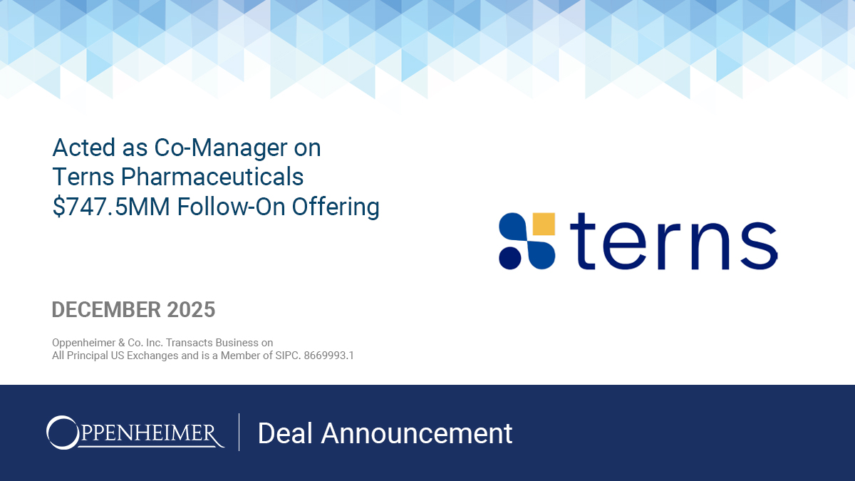 Oppenheimer & Co. Inc. acted as Co-Manager on Terns Pharmaceuticals $747.5MM Follow-On Offering