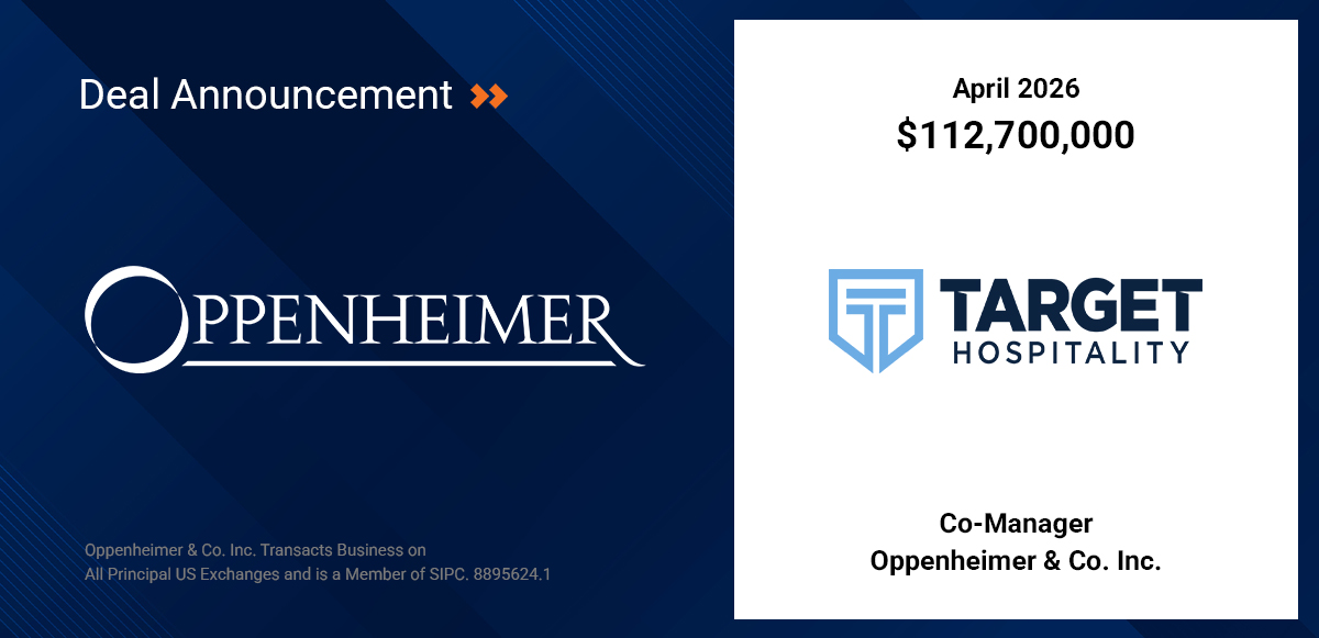 Oppenheimer & Co. Inc. acted as Co-Manager on Target Hospitality Corp.’s $112.7MM Follow-On Offering