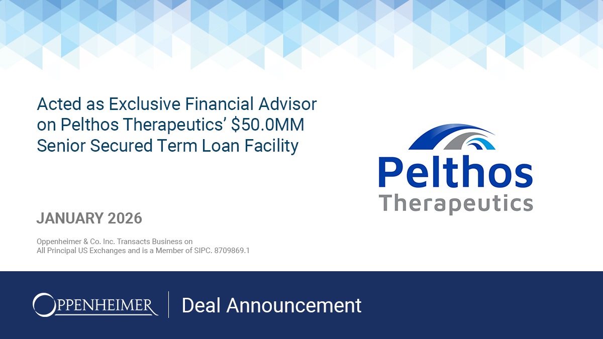 Oppenheimer & Co. Inc. acted as Exclusive Financial Advisor on Pelthos Therapeutics’ $50.0MM Senior Secured Term Loan Facility