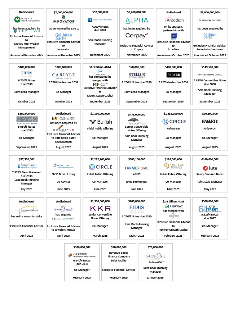 In 2025, Oppenheimer’s Financial Institutions Investment Banking team delivered another strong year of execution, completing 34 transactions across real estate, asset management, specialty finance, and insurance. Through a combination of strategic capital markets activity and expert advisory services, the team provided customized solutions designed to support clients’ growth, liquidity, and long-term value creation.