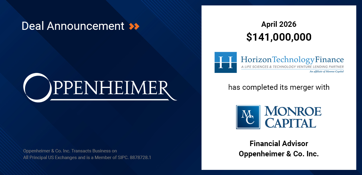 Oppenheimer & Co. Inc. Acted as Financial Advisor to the Horizon Technology Finance Corp. Special Committee on Horizon’s Merger with Monroe Capital Corp