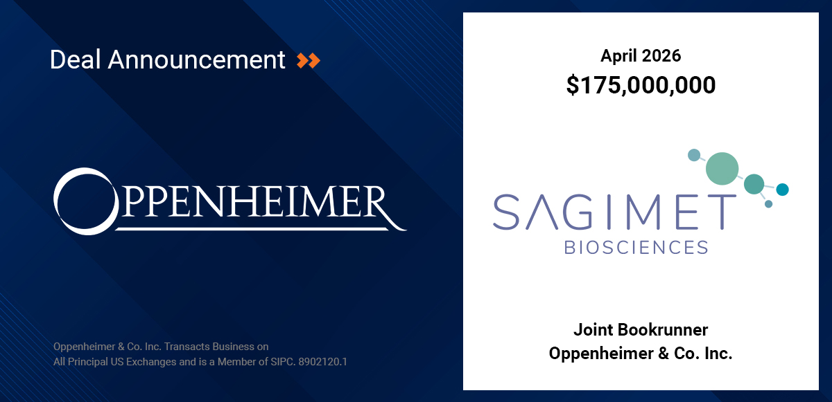 Oppenheimer & Co. Inc. acted as Joint Bookrunner on Sagimet Biosciences’ $175MM Follow-On Offering