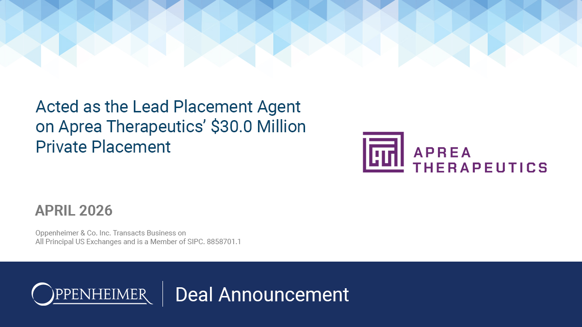 Oppenheimer & Co. Inc. acted as a Lead Placement Agent on Aprea Therapeutics’ $30.0 Million Private Placement